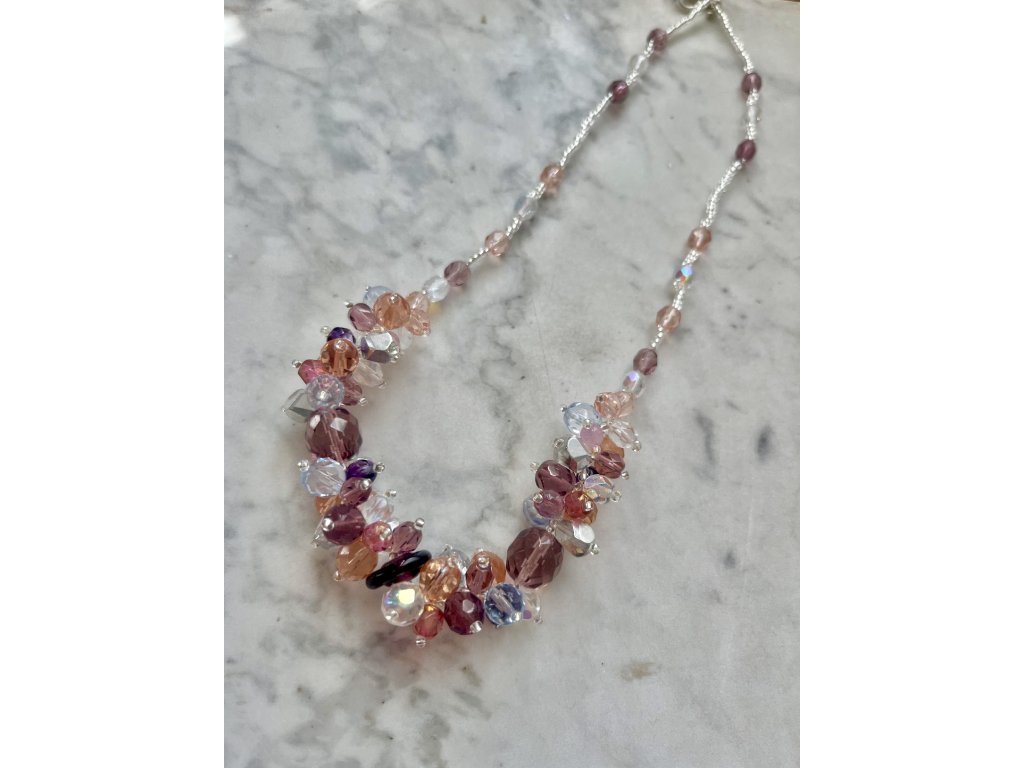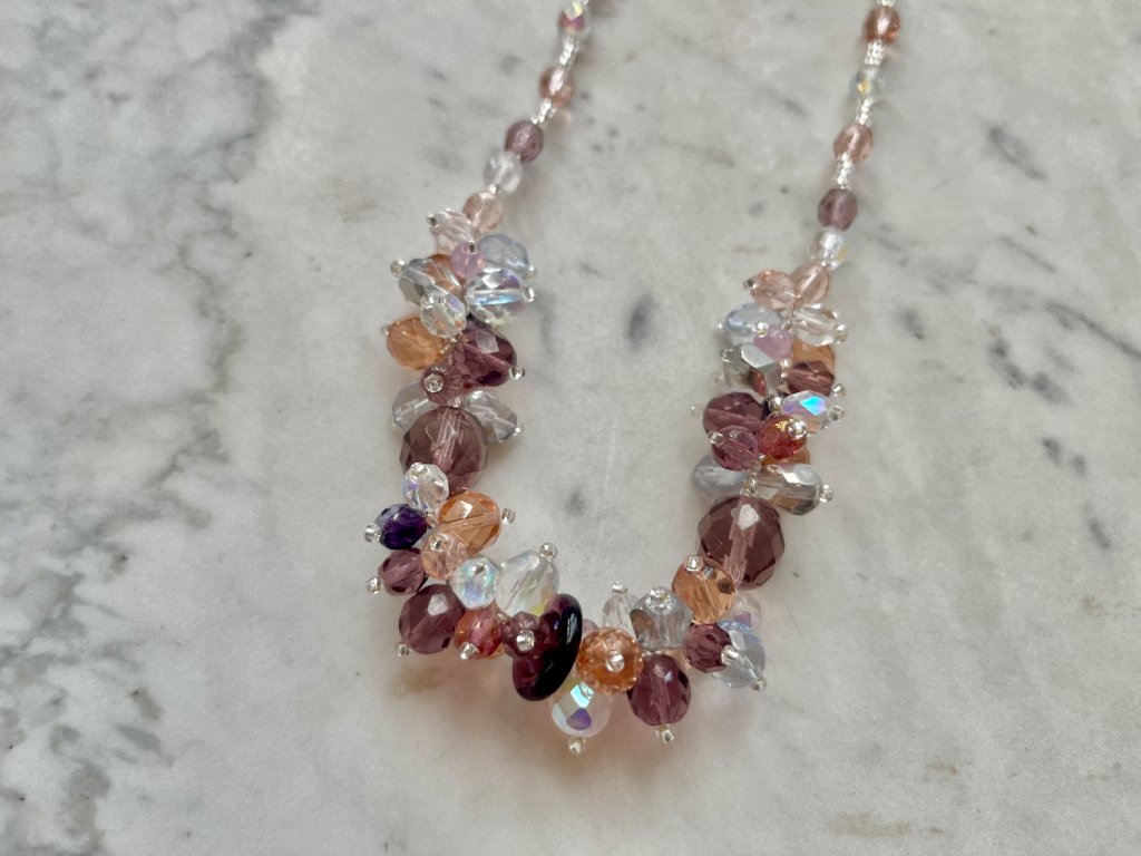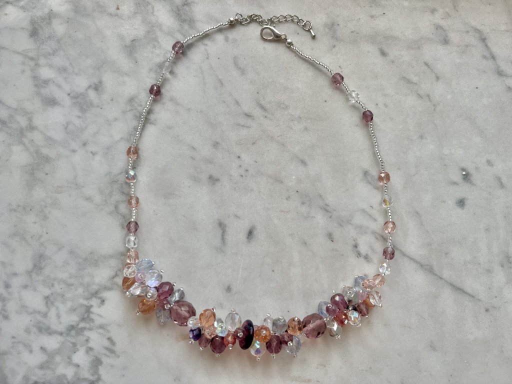 Hledáte šperk, který nebude mít nikdo jiný? Tento ručně vyrobený náhrdelník z broušených korálků je přesně tím, co váš outfit potřebuje. Vinutá perla ve středu náhrdelníku vznikla tradiční technikou vinutí skla nad plamenem – a právě díky tomu je každý kousek naprostý originál.