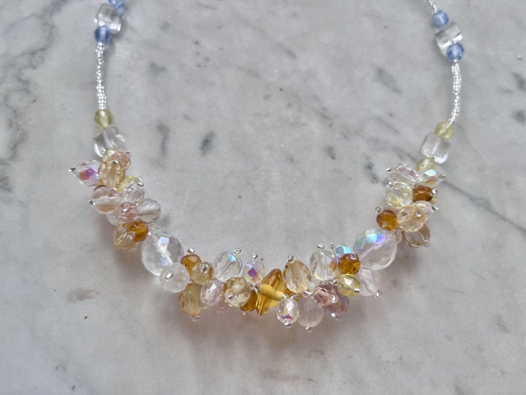 Hledáte šperk, který nebude mít nikdo jiný? Tento ručně vyrobený náhrdelník z broušených korálků je přesně tím, co váš outfit potřebuje. Vinutá perla ve středu náhrdelníku vznikla tradiční technikou vinutí skla nad plamenem – a právě díky tomu je každý kousek naprostý originál.