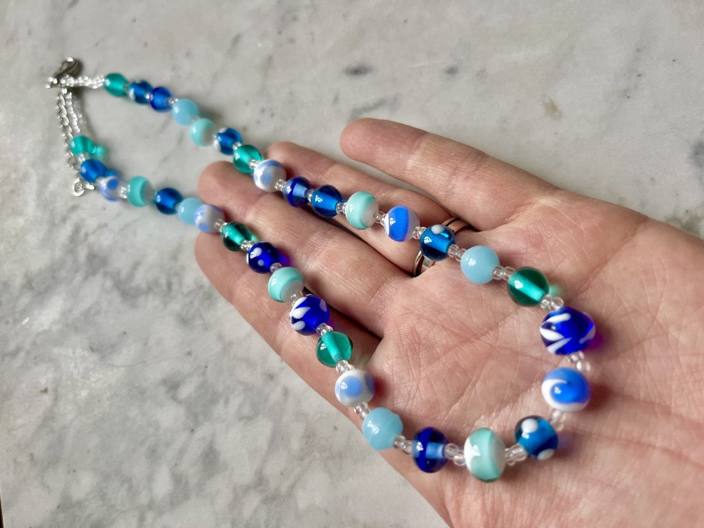 Vdechněte svému stylu originalitu s tímto jedinečným náhrdelníkem z ručně vinutých perel. Každý kus je pečlivě a s láskou vytvořen tradiční technikou vinutí skla nad plamenem – žádné dva náhrdelníky nejsou úplně stejné.