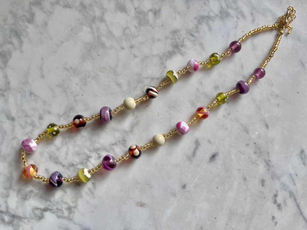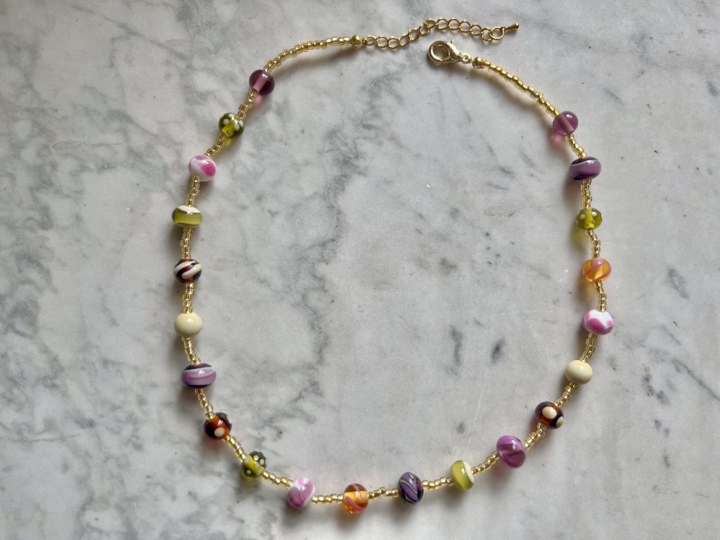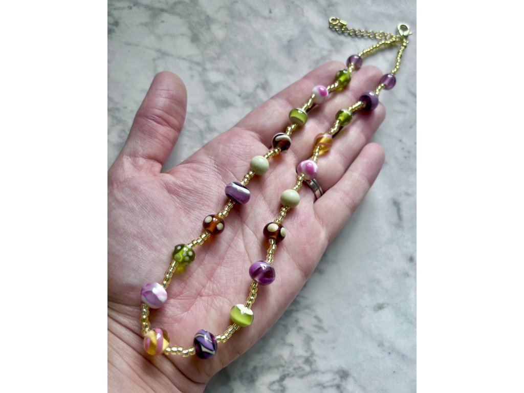Hledáte šperk, který nebude mít nikdo jiný? Tento ručně vyrobený náhrdelník z vinutých perel je přesně tím, co váš outfit potřebuje. Každá perla vznikla tradiční technikou vinutí skla nad plamenem – a právě díky tomu je každý kousek naprostý originál.