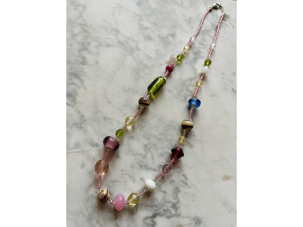Ručně vyrobený náhrdelník z českých broušených korálků a vinutých perel vlastní výroby inspirovaný mým domovem, krásným zámkem Jemniště.